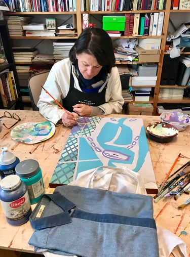 Dans mon atelier, mes gestes interprètent ma mémoire sur la toile.